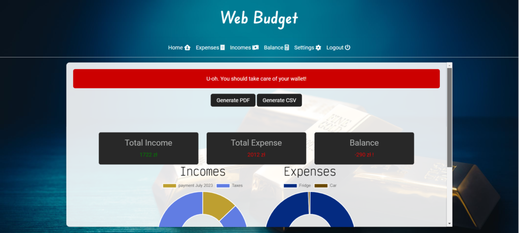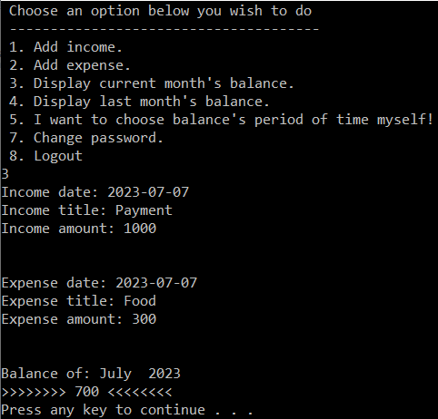 Budget App – console application written in C++/OOP language. Main goal was to help user control his own finances.
